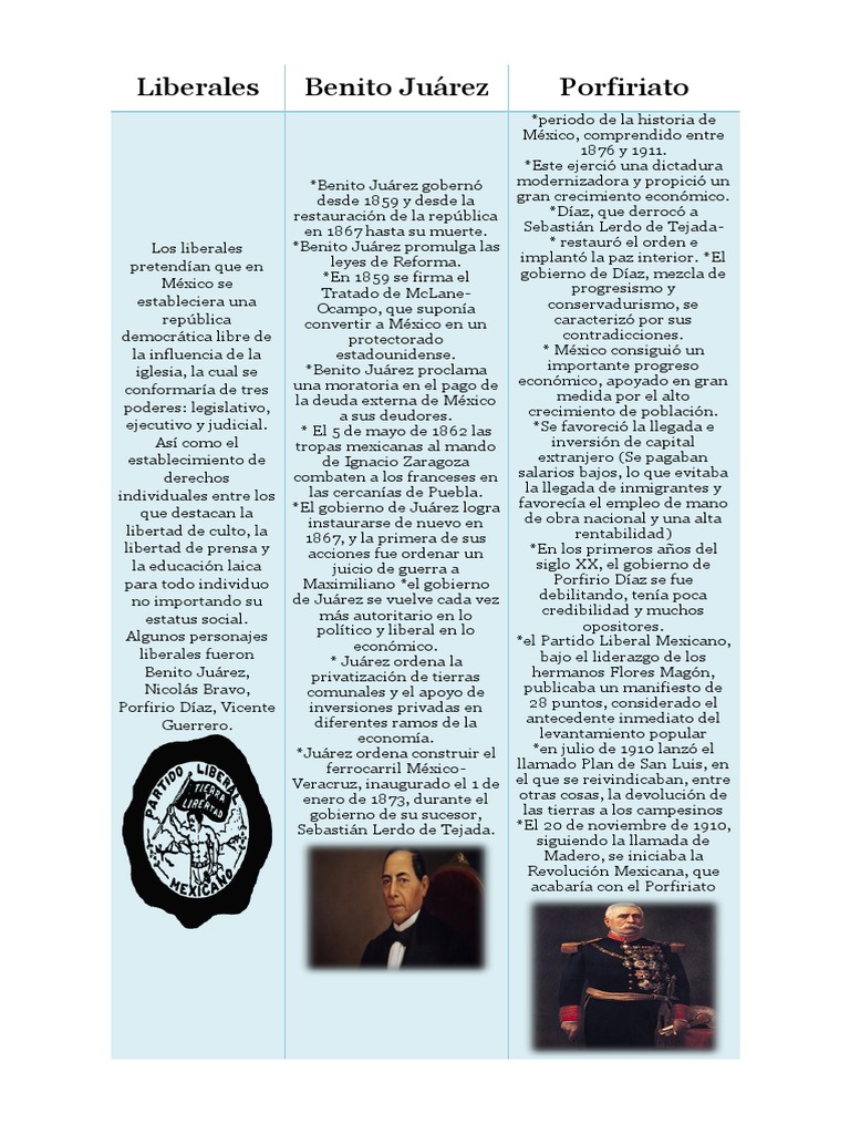 Cuadro Comparativo Entre Liberales Benito Juarez Y Porfirio Diaz Mexico Politica General