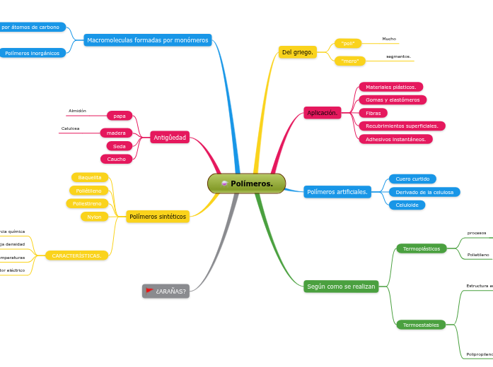 Esta plantilla de mapa conceptual de araña puede ayudarte a. Segun su composicion 11. TICs mapa conceptual polímeros Biodegradable Polímero Ventajas PVC Utilidades Tuberías Polipropileno PP Utilidades Coches PVC Utilidades Coches Convencionales sintéticos Los más empleados PVC PVC Utilidades Revestimientos Polihidroxialcanoatos Características Desventajas Polihidroxialcanoatos Características Ventajas.